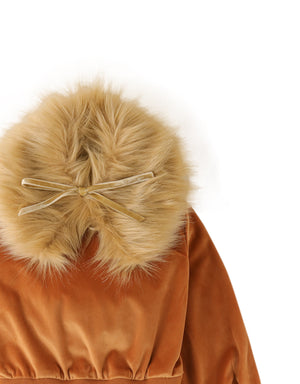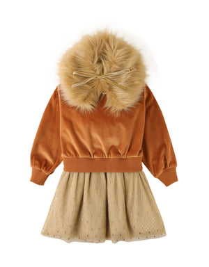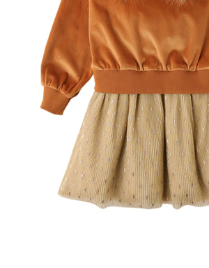 GIRLS VELVET DRESS WITH TULLE SKIRT AND DETACHABLE FAUX FUR COLLAR