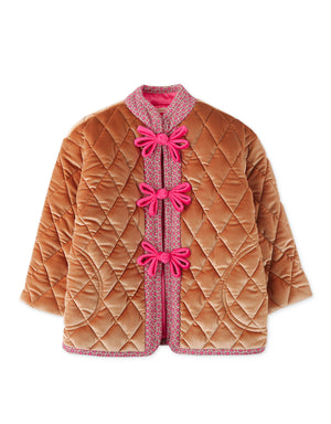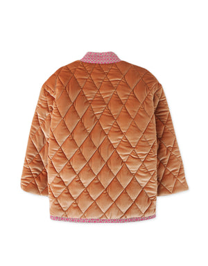 GIRLS WADDED VELVET COAT WITH CONTRAST BINDING AND BUTTON LOOPS