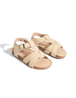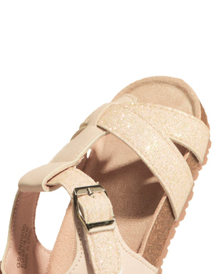 GLITTERED CROSS STRAP BUCKLED SANDALS