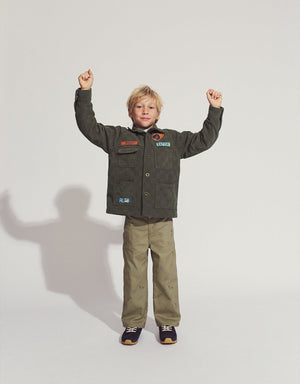 Built for daring quests and adorned with cool embroidery and fun patches, the Hunter Utility Jacket in Mistywood is your little one's ultimate adventure buddy.