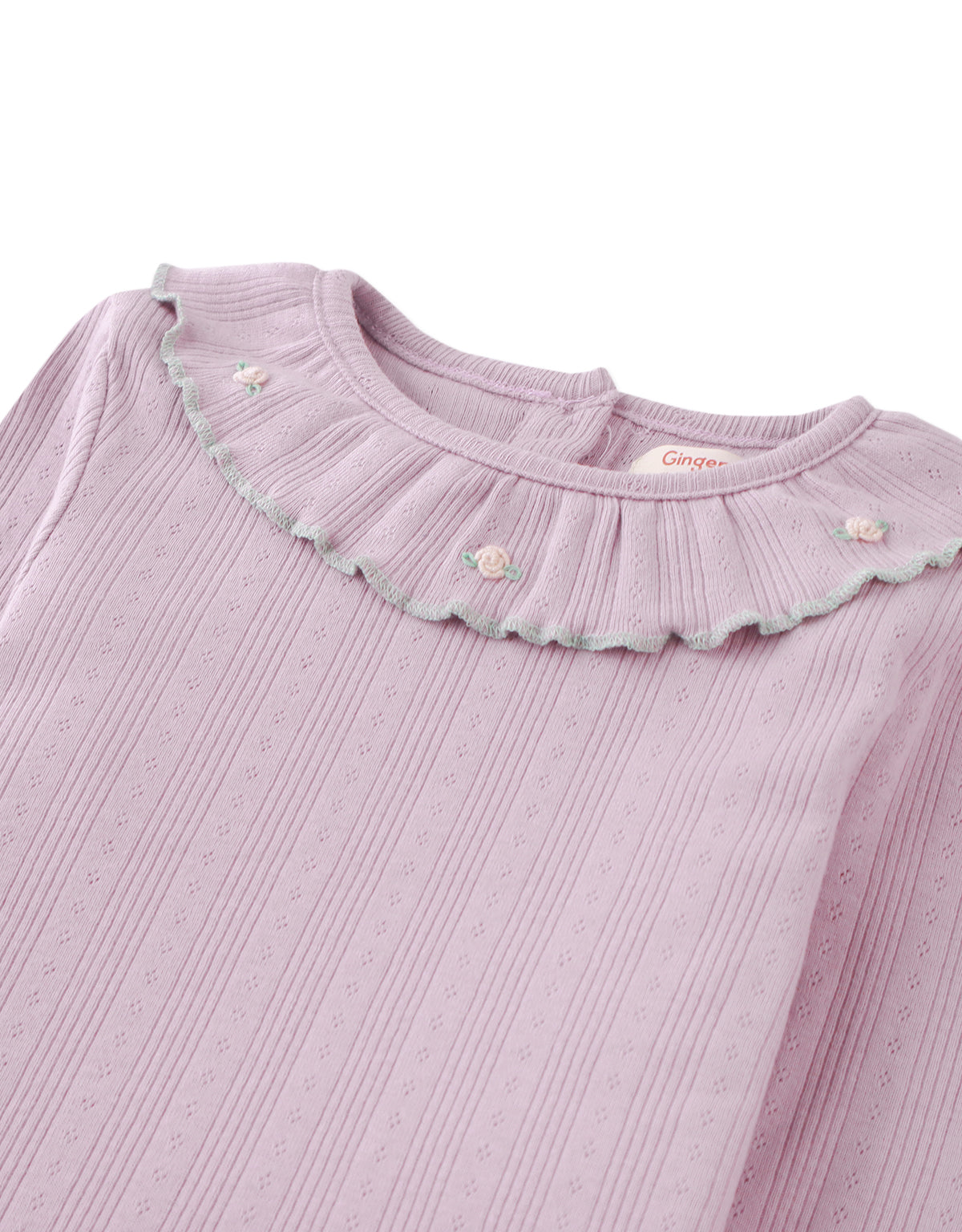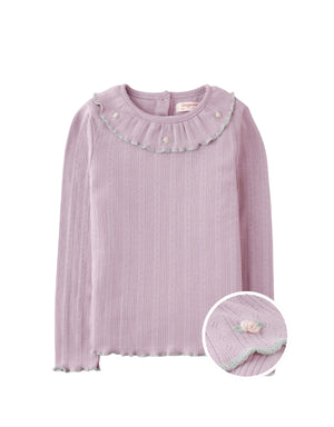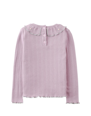 JENNY LONG SLEEVES TEE LILAC WITH EMBROIDERED RUFFLED COLLAR