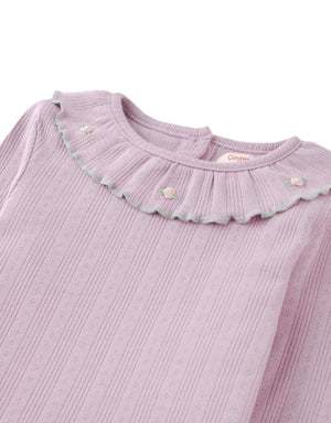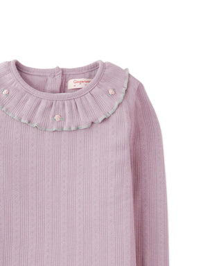 Dress your little one in the Jenny Long Sleeves Tee in Lilac, featuring an embroidered ruffled collar for a sweet, cottage-inspired look.