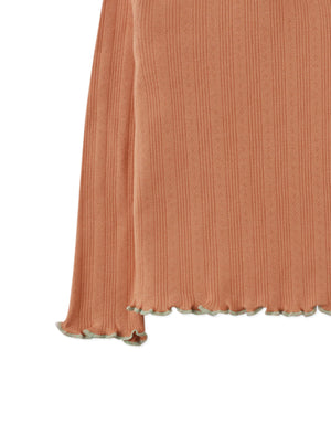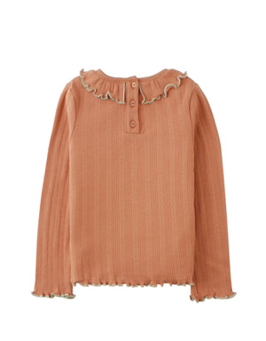 JENNY LONG SLEEVES TEE TAN WITH EMBROIDERED RUFFLED COLLAR