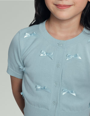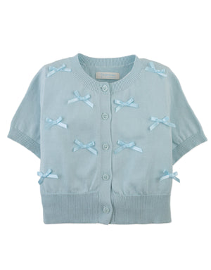JULIETA KNITTED SHORT SLEEVE CARDIGAN WITH BOW DETAILS