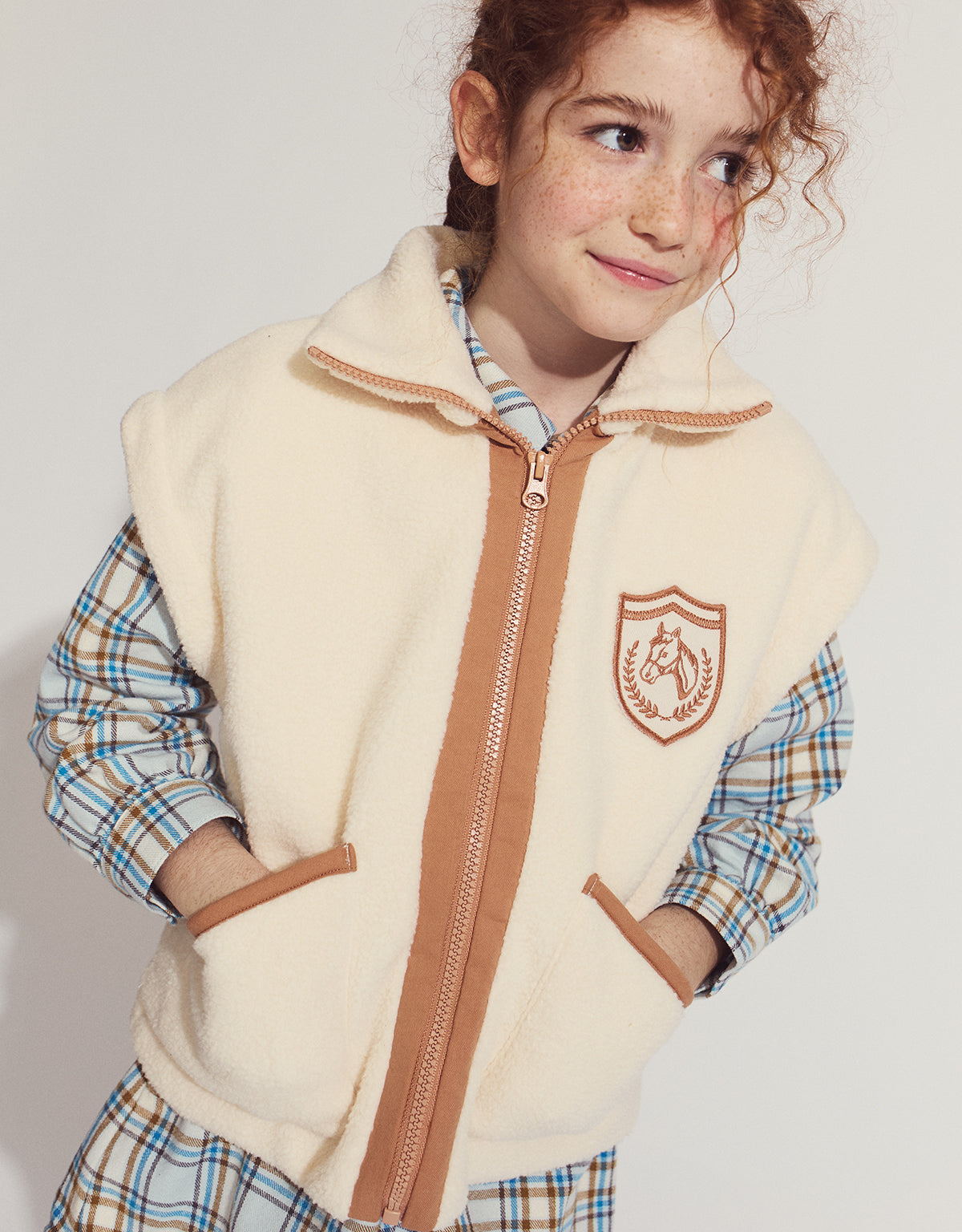 JUNO GILET EGGNOG WITH HORSE BADGE AND PATCH EMBROIDERY