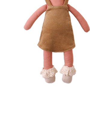 Meet Jyline Bunny! Dressed in a cozy corduroy outfit and ruffled rib socks, she’s made for hugs and heartwarming moments. With her gentle presence, Jyline brings joy to playtime and bedtime alike.