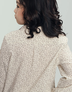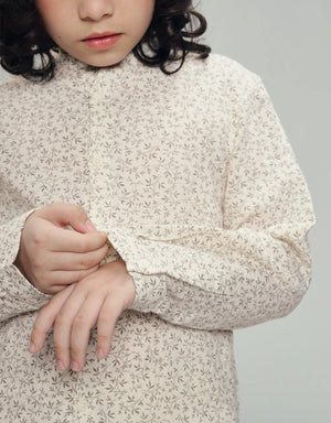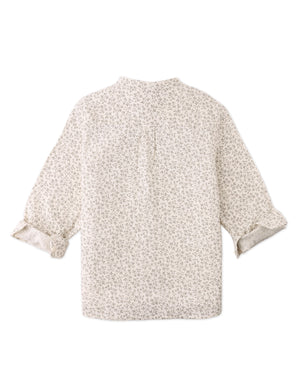 Crafted with a subtle leaf motif and a structured mandarin collar, this long sleeve shirt brings a sophisticated, nature-inspired touch to everyday outfits.