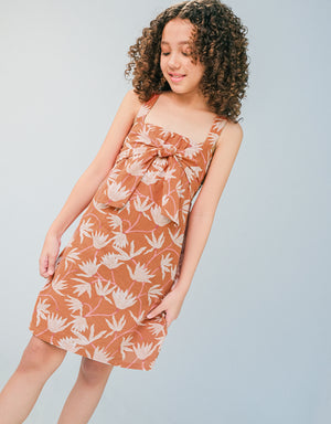 KATRINA PRINTED STRAPPY DRESS WITH WOVEN TIES