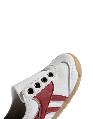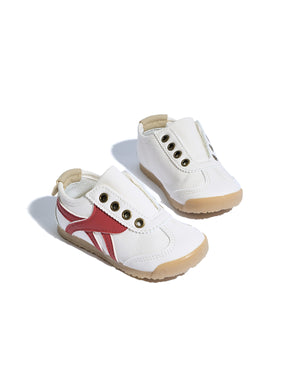 Quick, comfy, and effortlessly stylish! These sneakers feature easy Velcro straps, a breathable canvas design, and sleek leather taping, perfect for your little one on the go.