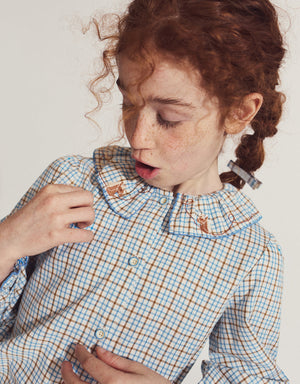 Add a touch of rustic charm to your little one's wardrobe with the Laurel Long Sleeves Blouse in Rancher checkered, featuring a beautifully embroidered horse on the collar!