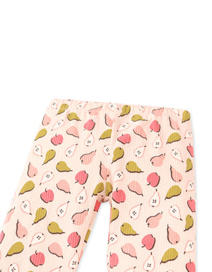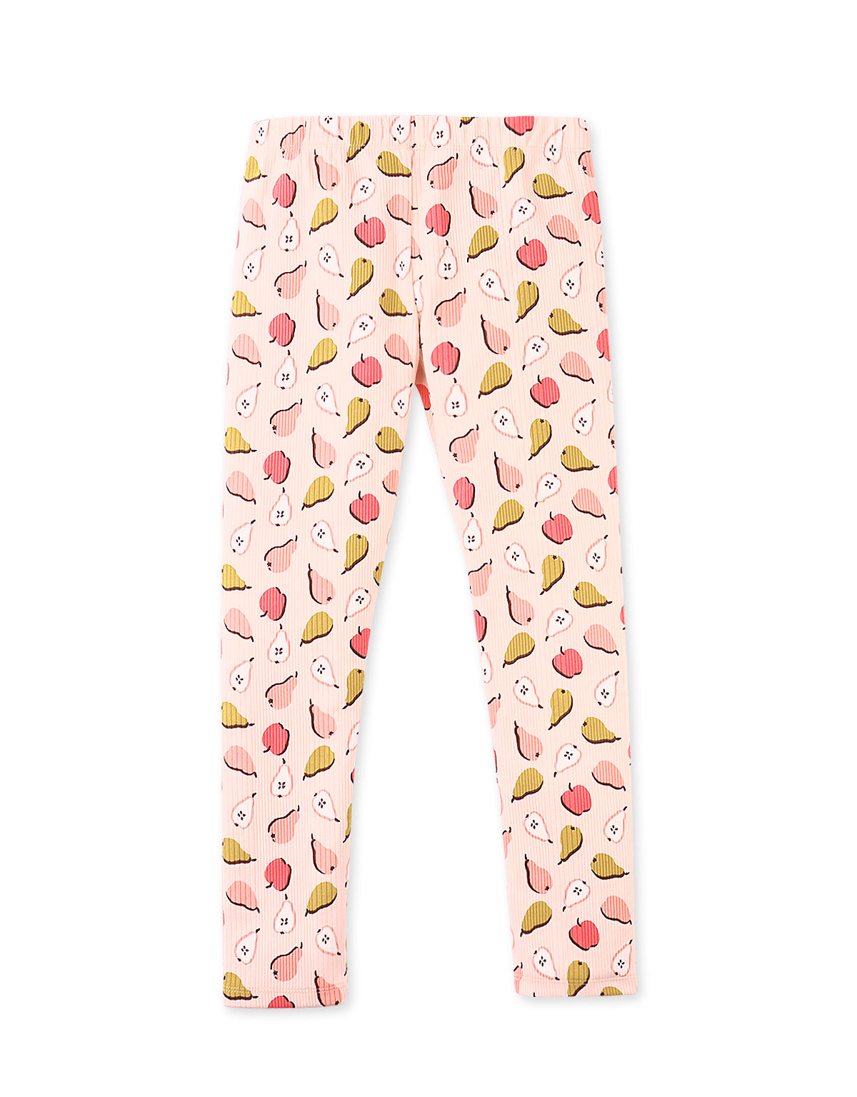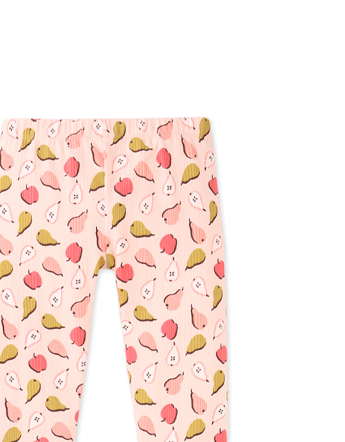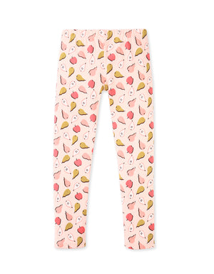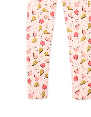 These all-over print leggings offer a playful and comfortable fit to your little one, featuring four delightful prints: Peaches and Gingham, Leaves, Apples and Pears, or Parrots — perfect for adding a touch of fun to any outfit.