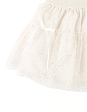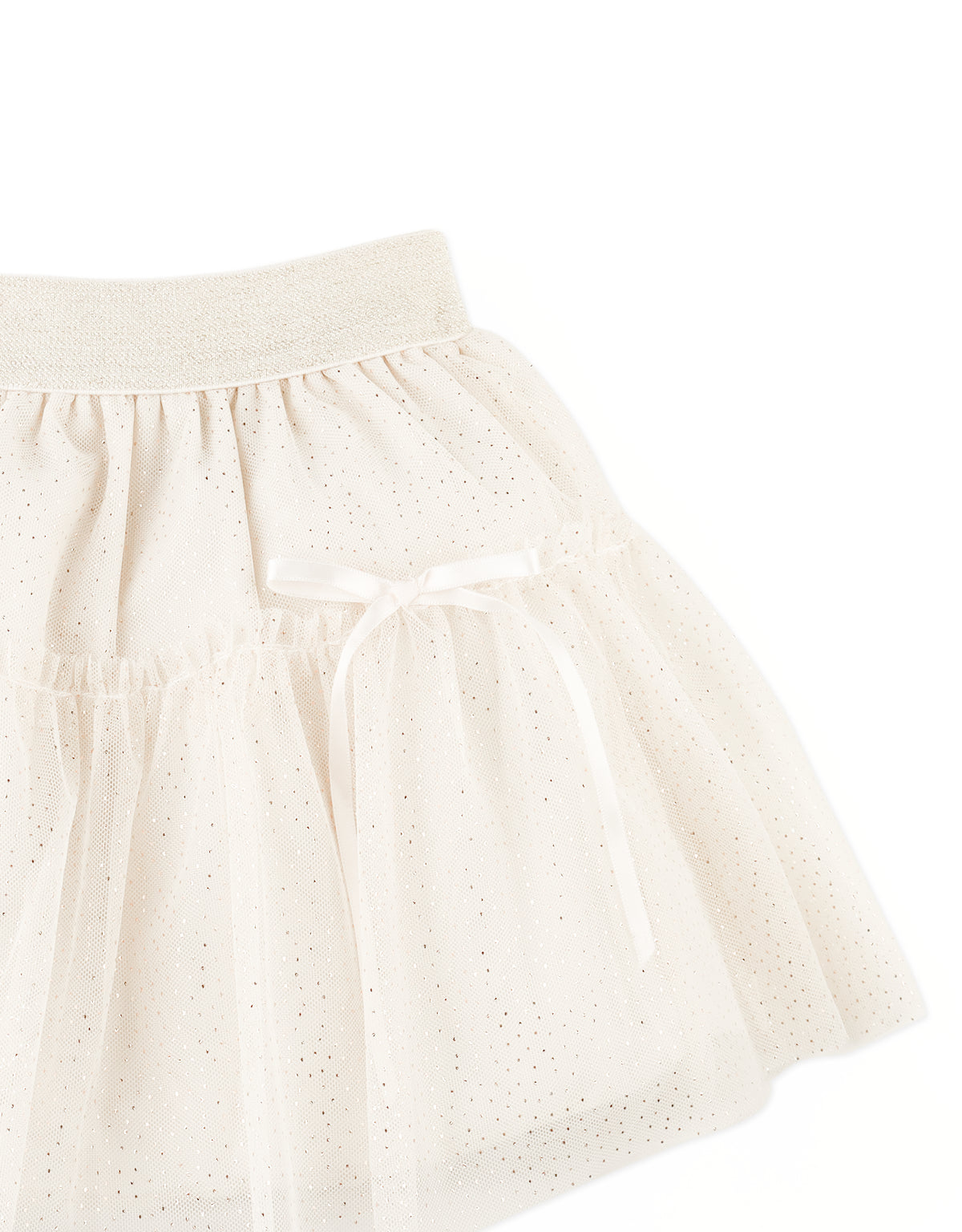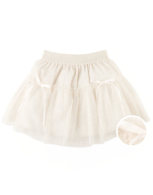 LOUISE SOFT TULLE TIERED SKORTS WITH VELVET BOW TRIMS