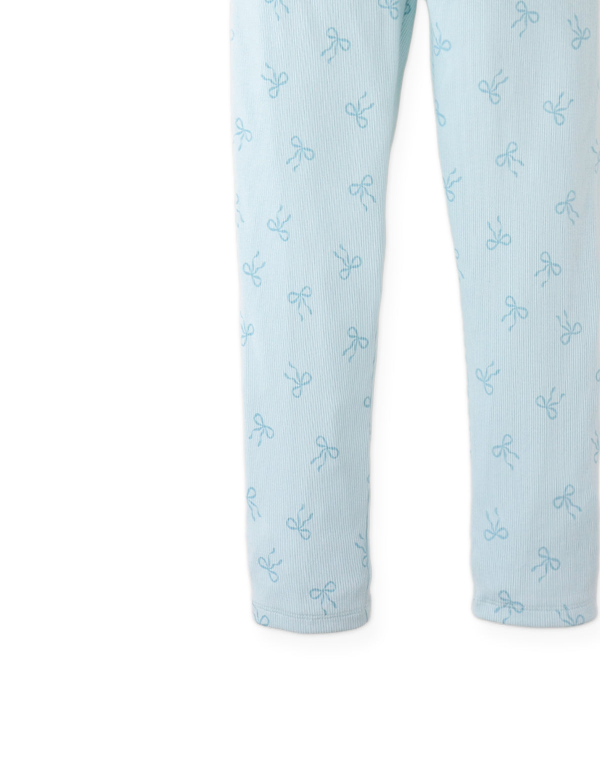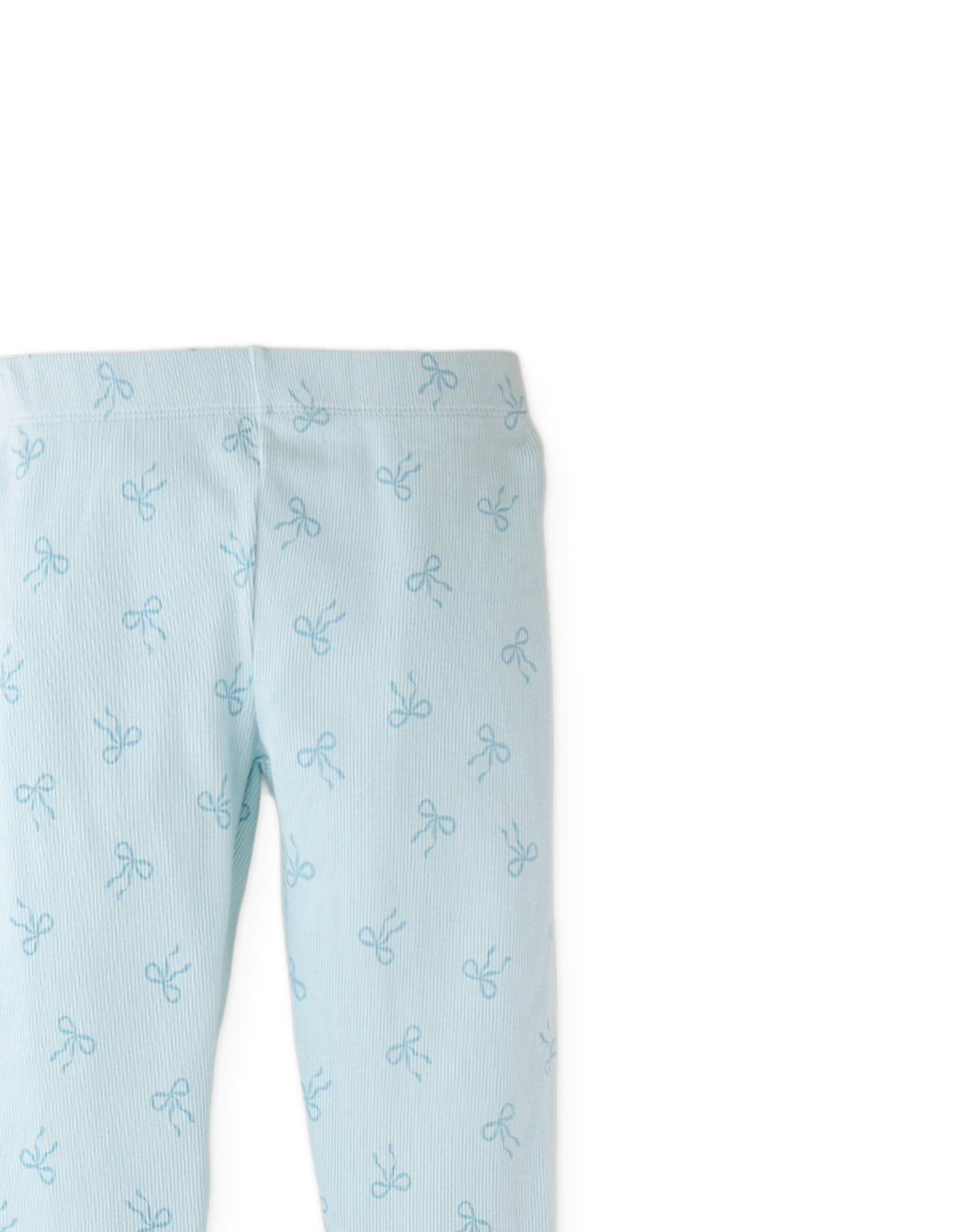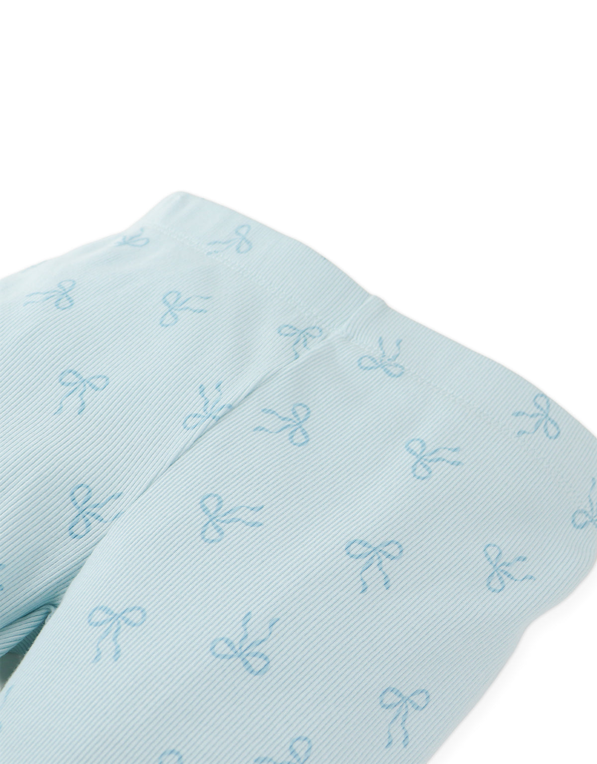 Step into playful comfort— these leggings feature an all-over bow print for soft, stretchy comfort with endless playful possibilities. Available in blue and off-white.