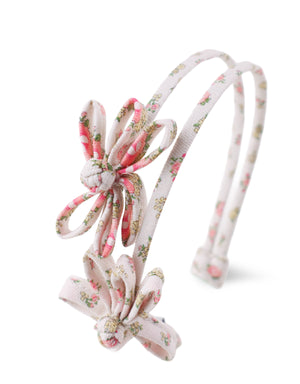 LUQUIER DOUBLE HEADBAND WITH FABRIC FLOWER ACCENTS
