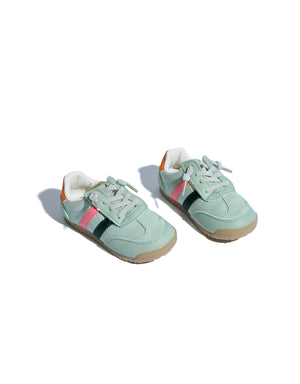 Classic style meets all-day comfort! With a breathable striped canvas design, soft faux leather details, and a flexible sole, these sneakers keep little feet stylish and comfy for every adventure.