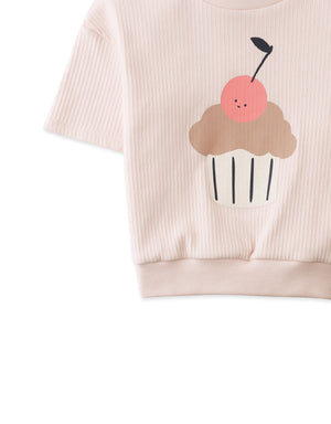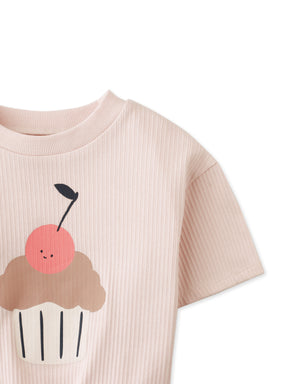 MADISON DROP SHOULDER TEE WITH CHERRY PRINT