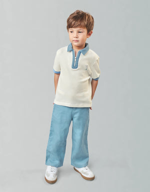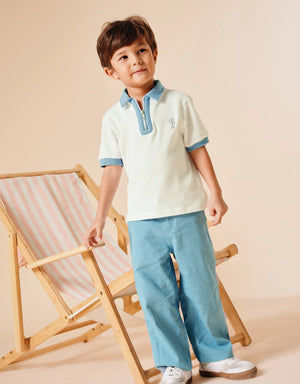 Ideal for warm-weather outings and polished playdates, these lightweight twill pants with its raffia belt and clean straight-leg cut bring easy style to your little one’s wardrobe.
