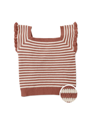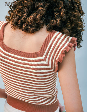 MARIAH STRIPEY KNITTED TOP WITH RUFFLE SLEEVES