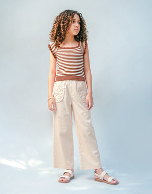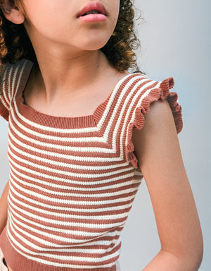 Brimming with cheerful charm, this stripey knitted top is designed with soft ruffle sleeves, making every moment feel extra special for your little one.