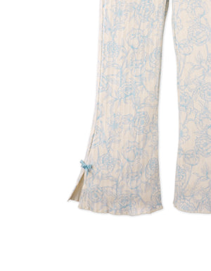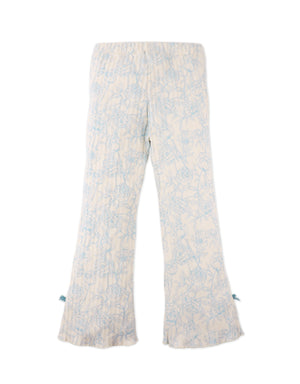 MARTA RIBBED BOOTCUT LEGGINGS WITH ALL-OVER PRINT AND SIDE SLIT BOWS