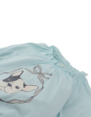 MARU T-SHIRT WITH PUFF SLEEVES AND DOG GRAPHICS
