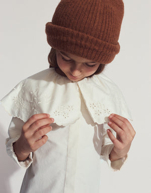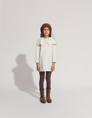 MERYL LONG SLEEVES SHIFT DRESS EGGNOG WITH EMBROIDERED CAPE AND CUFFS