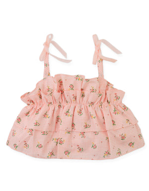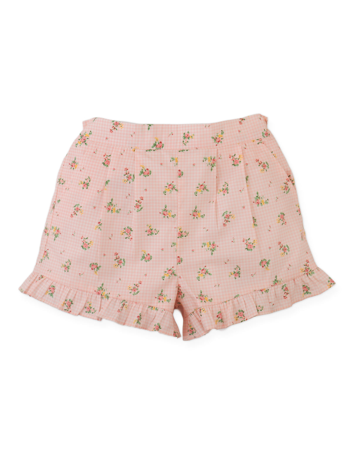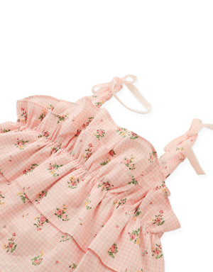 Bloom in playful ease with this floral print ruffled shorts set. With fluttering hems and dainty florals all around, it’s a look made for days filled with laughter and adventure.