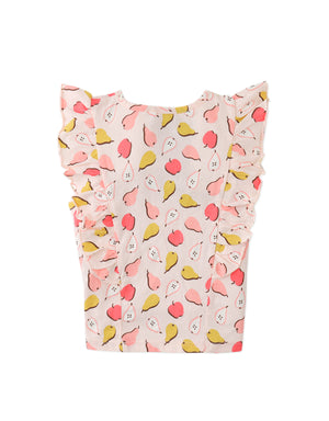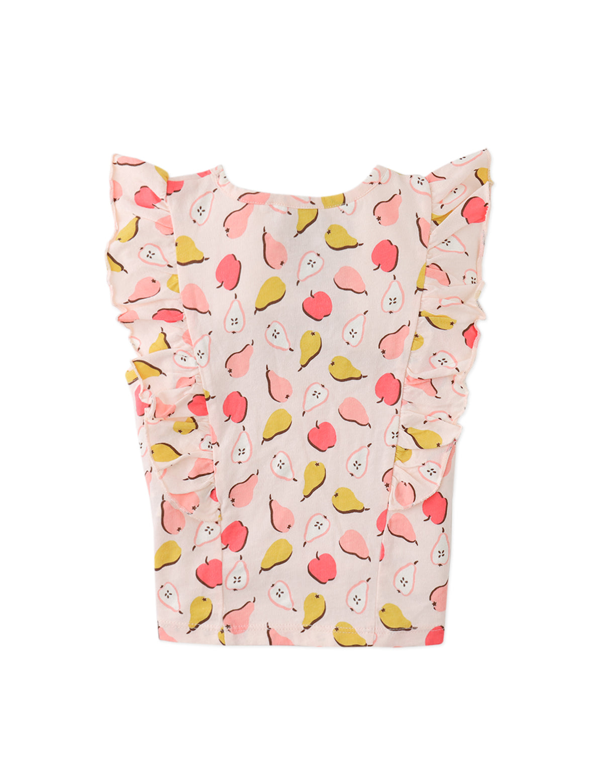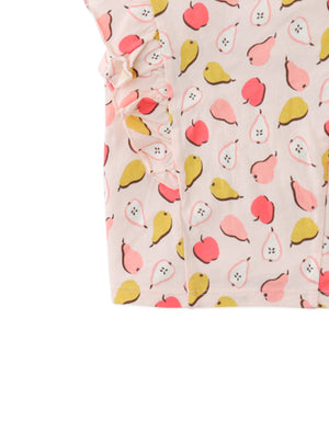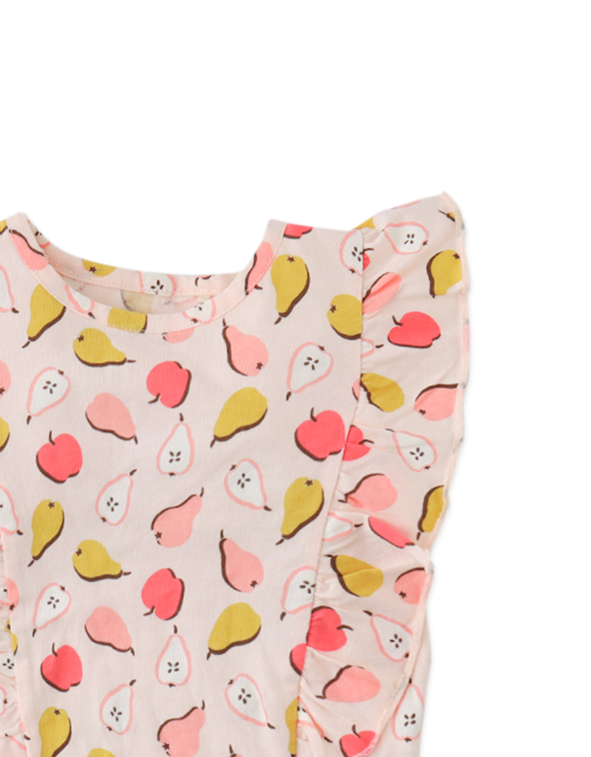 This all-over T-shirt, featuring extended sleeves, comes in vibrant parrot or apples and peaches print, perfect for adding a burst of color to your little one’s wardrobe.