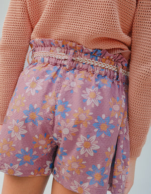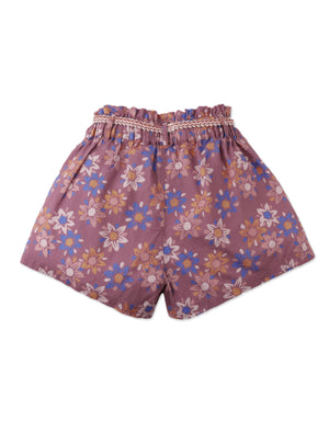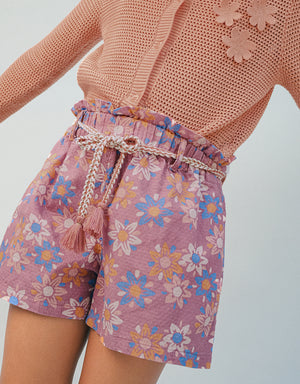 MYKA PRINTED DOBBY FLOWY SHORTS WITH BELT AND TASSELS