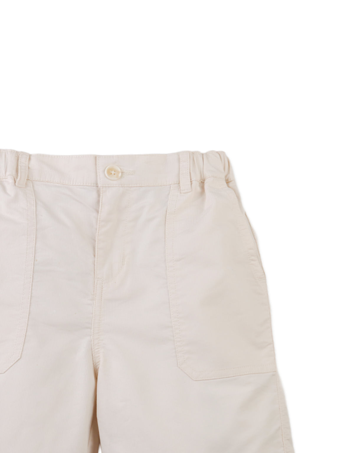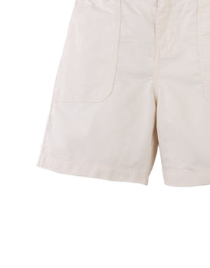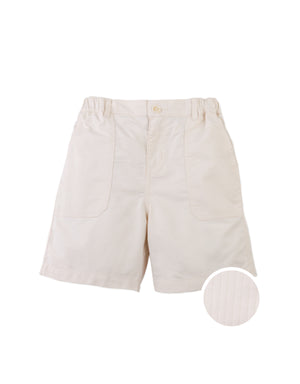 A daily favorite - these structured shorts in off- white or khaki, feature a neat texture and handy patch pockets for playful days out.