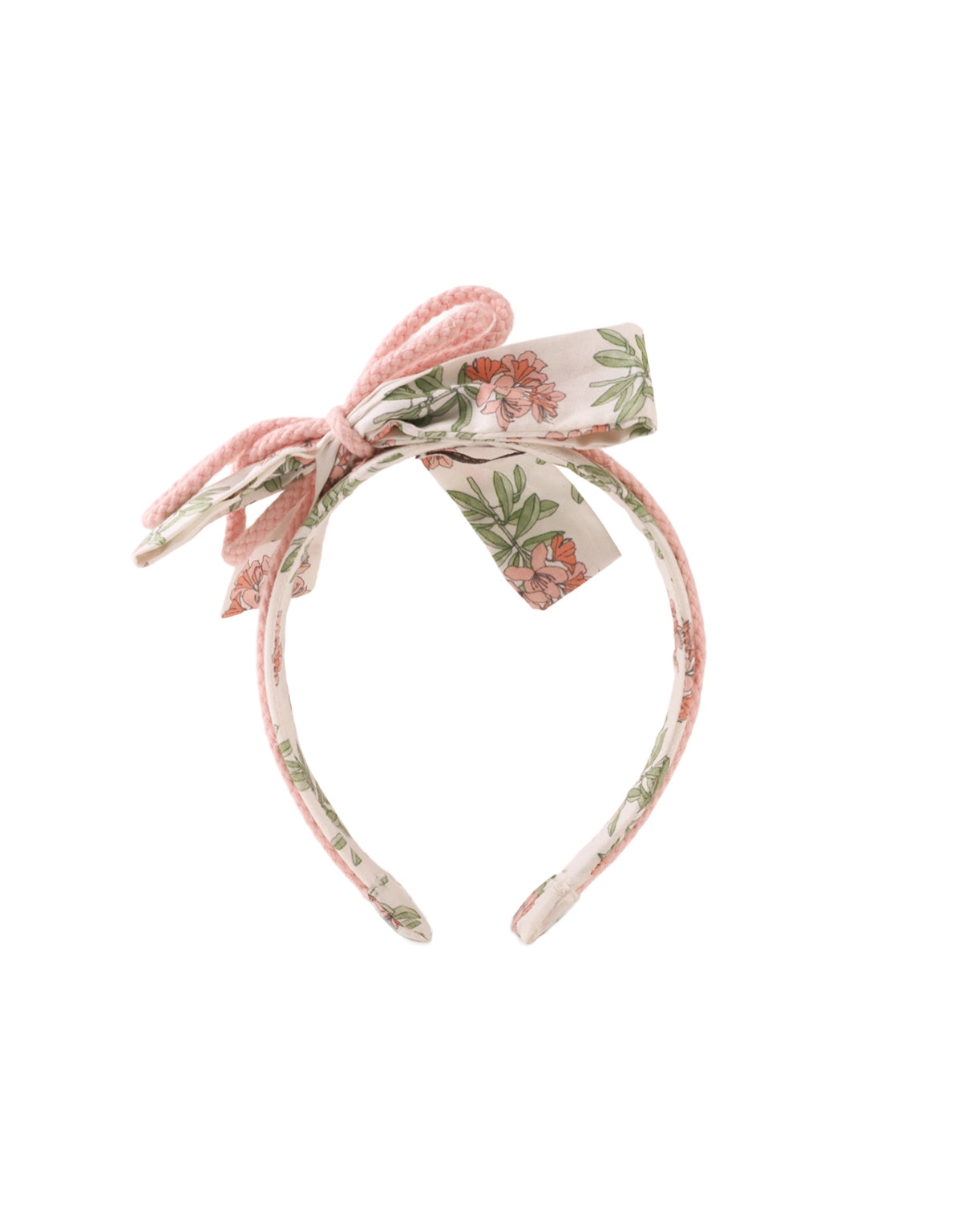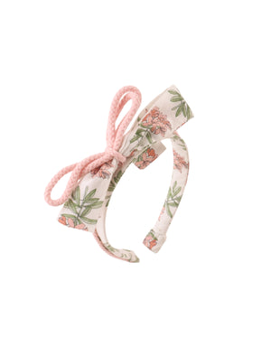 A beautiful floral-printed fabric headband topped with a pink corded bow, bringing a sweet and polished finish to your little one’s outfit.