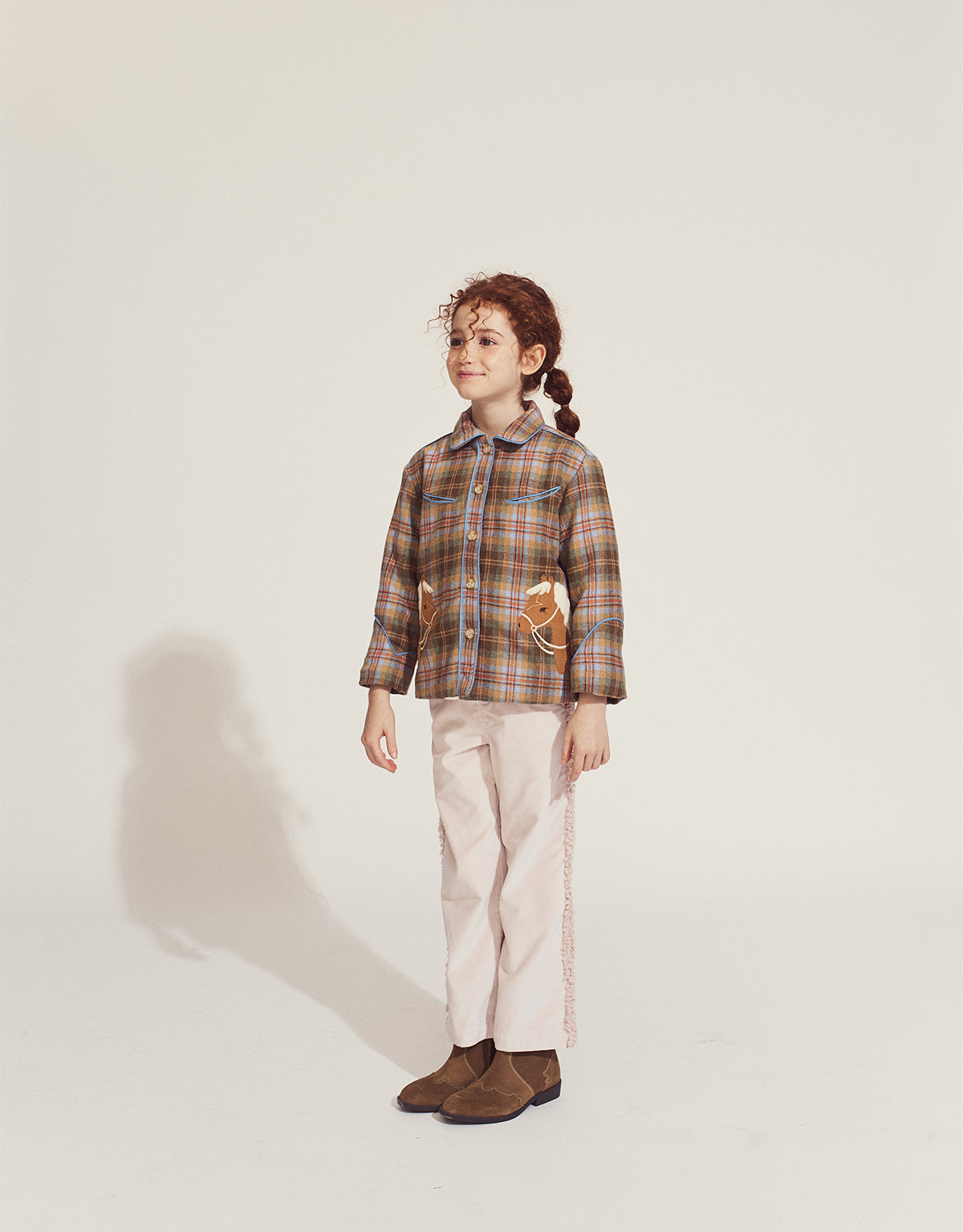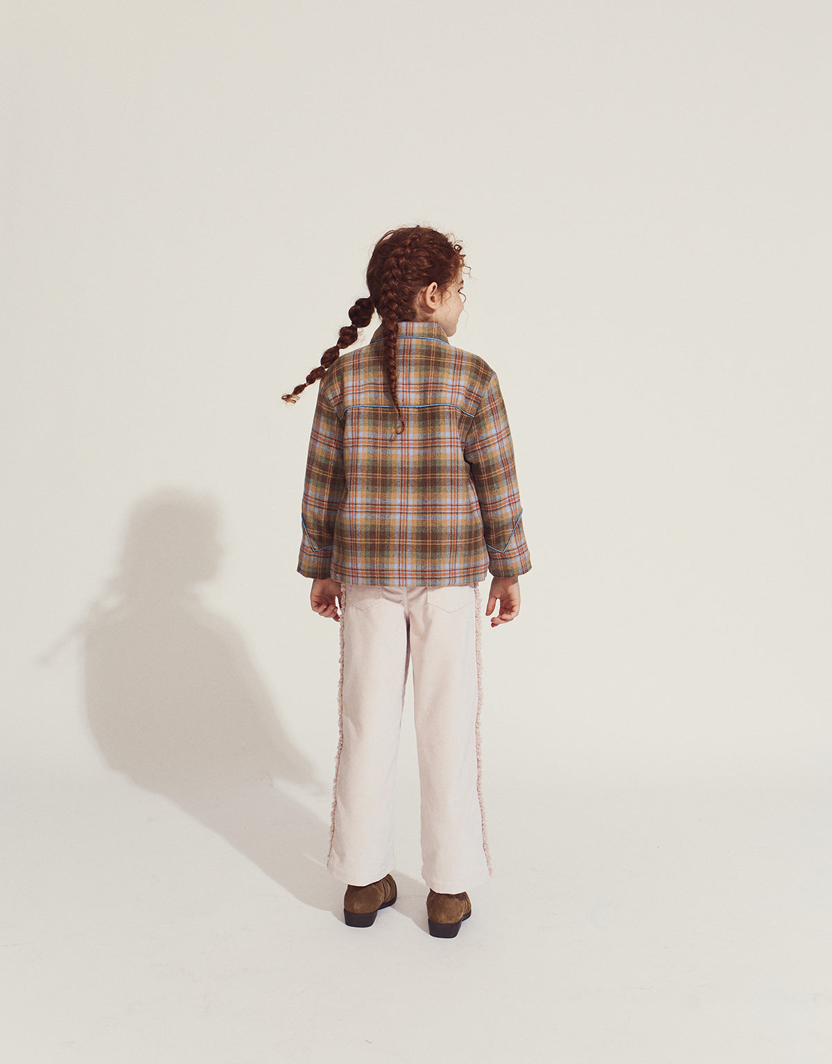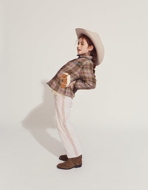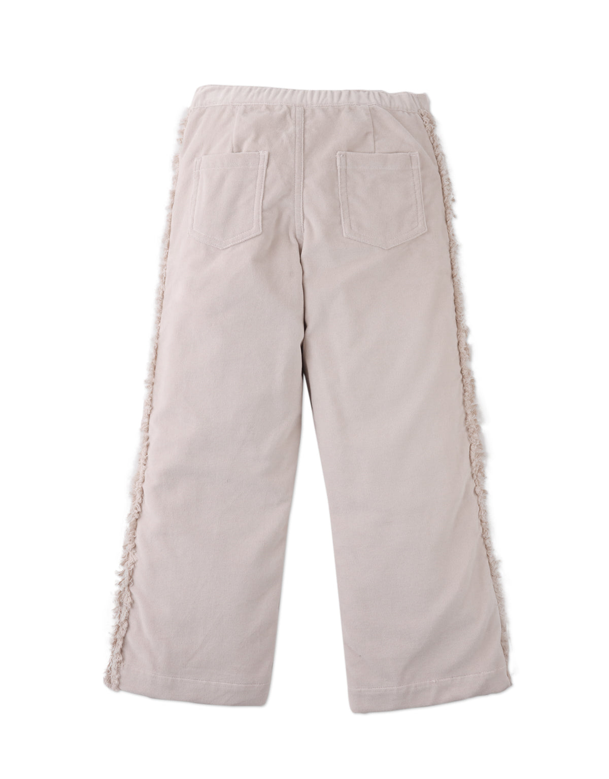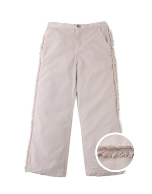 The Rhea Wide Leg Pants in light mauve, with tonal tassel accents on the sides, bring a charming, rustic touch to your child's wardrobe, perfect for cozy, countryside-inspired days.