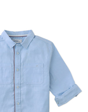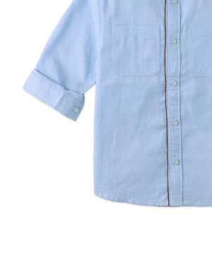 Woven for comfort and durability, this long sleeve jacquard shirt in blue is perfect for layering or wearing on its own for everyday ease.