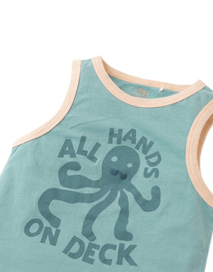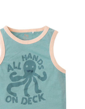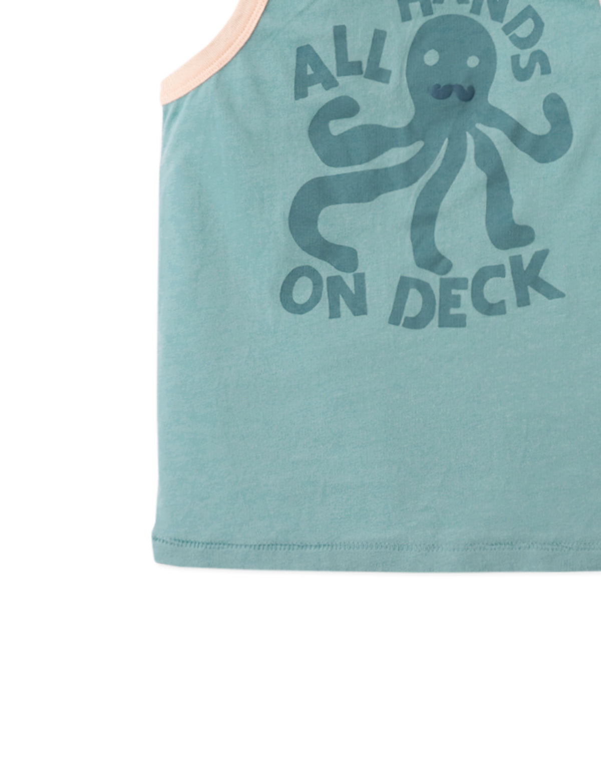 Let your little sailor dive into adventure with this cotton ringer tank, featuring a light, breezy feel, and a playful octopus and seahorse print.