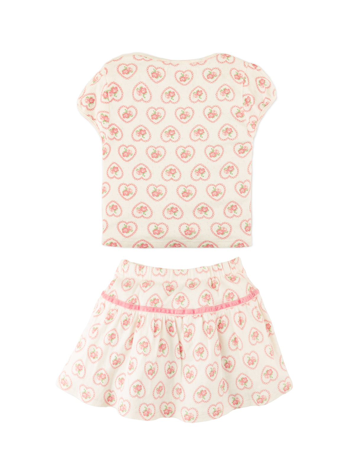 ROSIE PRINTED POINTELLE SKORT SET WITH BOWS