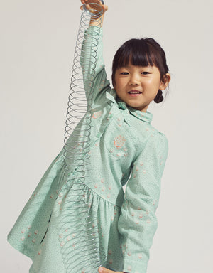 Treat your little one to the timeless charm of the Sabel Long Sleeves in Mint Grove, featuring an elegant drop waist, Peter Pan collar, and sweet tie details—perfect for any occasion!