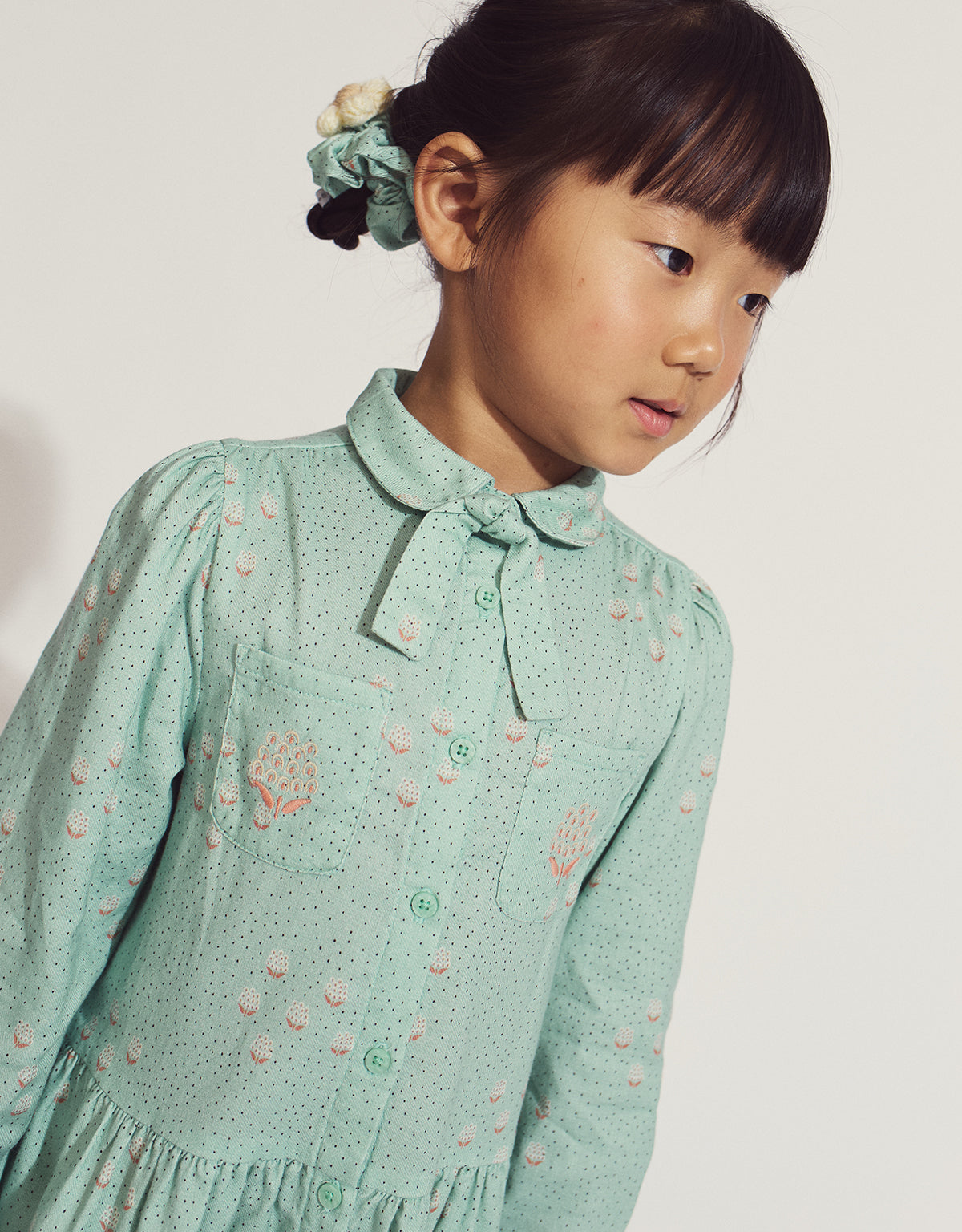 SABEL LONG SLEEVES MINT GROVE WITH DROP WAIST, PETER PAN COLLAR, AND TIE DETAILS