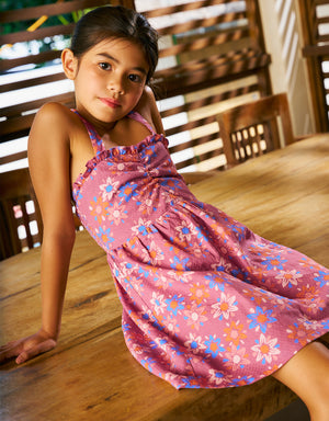 Filled with vibrant floral prints and soft ruffles, this batik halter dress brings joy and style to your little one’s wardrobe.