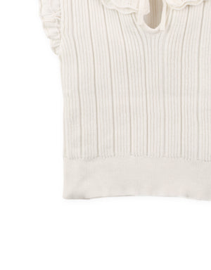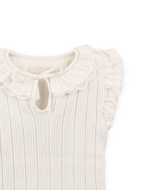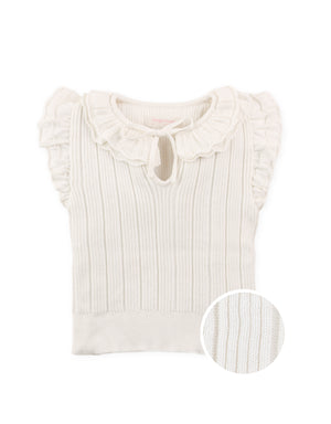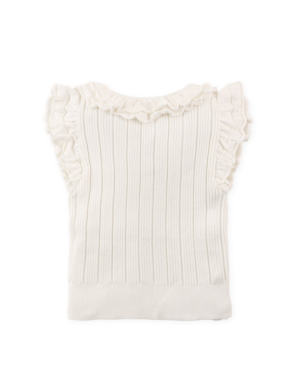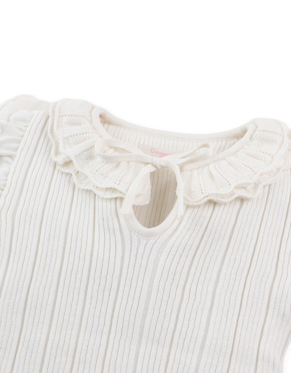 Dress your little one in cheerfulness with this off-white pointelle knitted top, finished with soft ruffles and crafted in breathable combed cotton for all-day comfort.