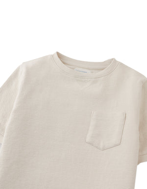 Fit your little one in this soft short sleeve ringer tee, available in grey or offwhite, and complete with a chest pocket that adds a playful and practical element to their look.