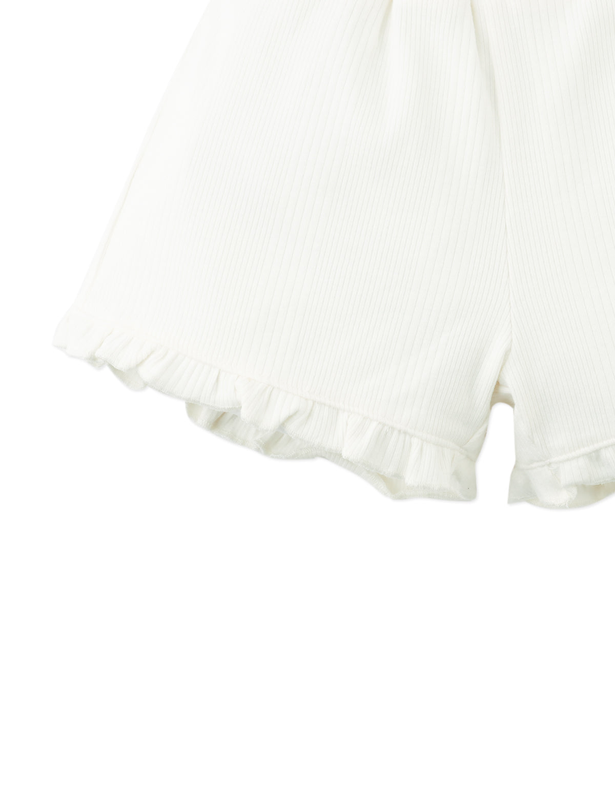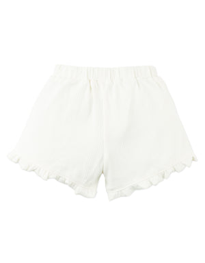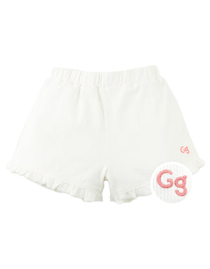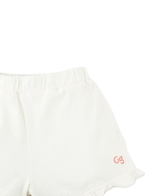 SELENA RIBBED SHORTS WITH RUFFLED HEM AND EMBROIDERED BADGE