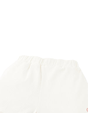Outfit your little one in these ribbed shorts, offered in off-white or multicoloured wavy stripes, with a ruffled hem and embroidered badge that adds a touch of fun to their day-to-day style.