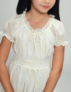 Grace every moment with the Floral Embroidered Maxi Dress with Smocked Bodice, where delicate embroidery meets effortless flow. A dreamy choice for elegant celebrations or serene days outdoors.
