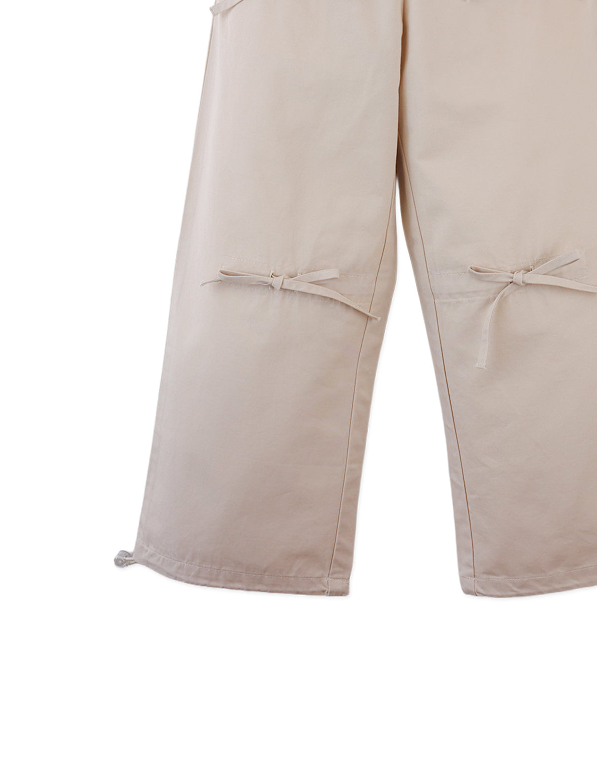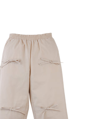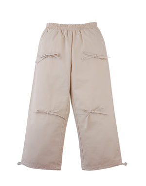 A darling wardrobe staple - soft ruched pants finished with delicate bows for that extra touch of sweetness.
