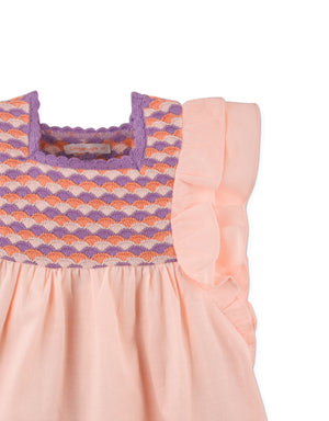 Stitch together a touch of playful charm in her look with our Sylvia woven ruffle top with crochet-style yoke, where every detail adds a delightful twist to her fit.