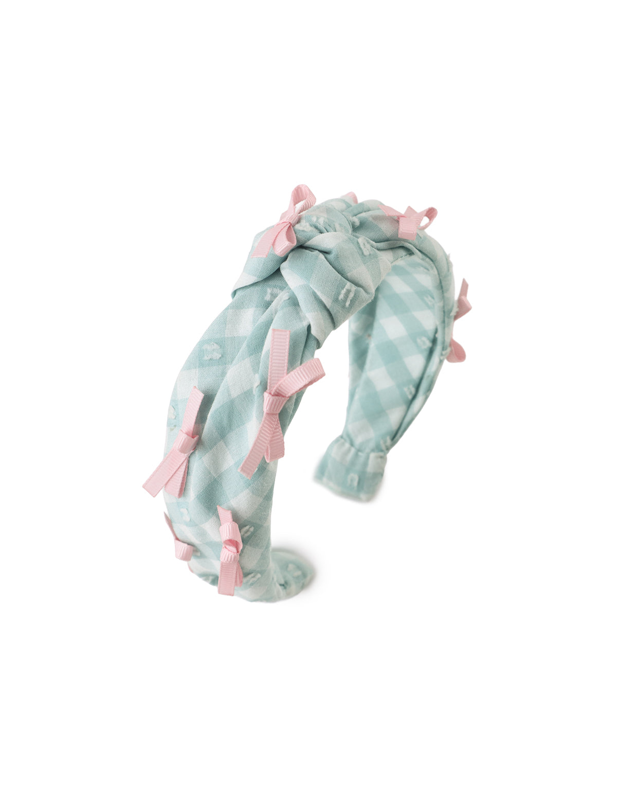 TAYLOR WIDE GINGHAM HEADBAND WITH GROSSGRAIN BOWS