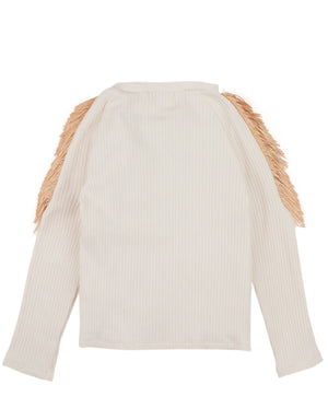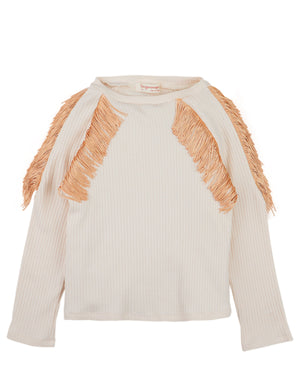 THERESE LONG SLEEVES TOP EGGNOG WITH CONTRAST FRINGE ACCENTS