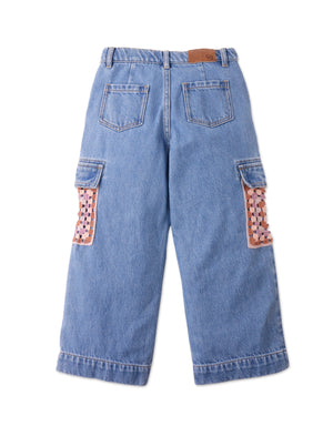 Crafted for both adventure and style, these denim cargo pants showcase multicoloured patterned crochet pockets for a look as unique as your little one.