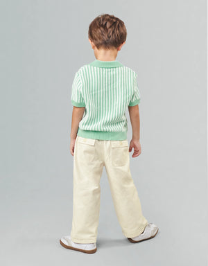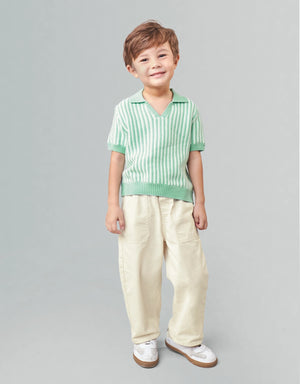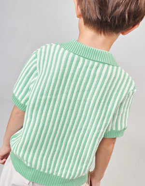 Textured for flair and crafted for comfort, this vertical stripe knit short-sleeved polo shirt brings a breezy air to your kid’s wardrobe. The crochet-style pattern in verdent green make it perfect for both playdates and dressier plans.