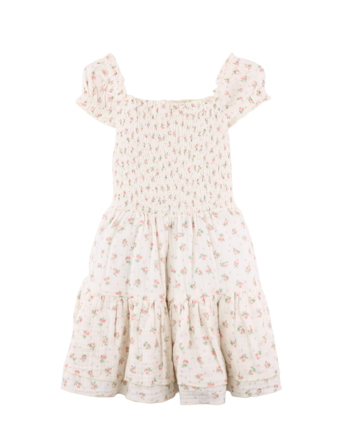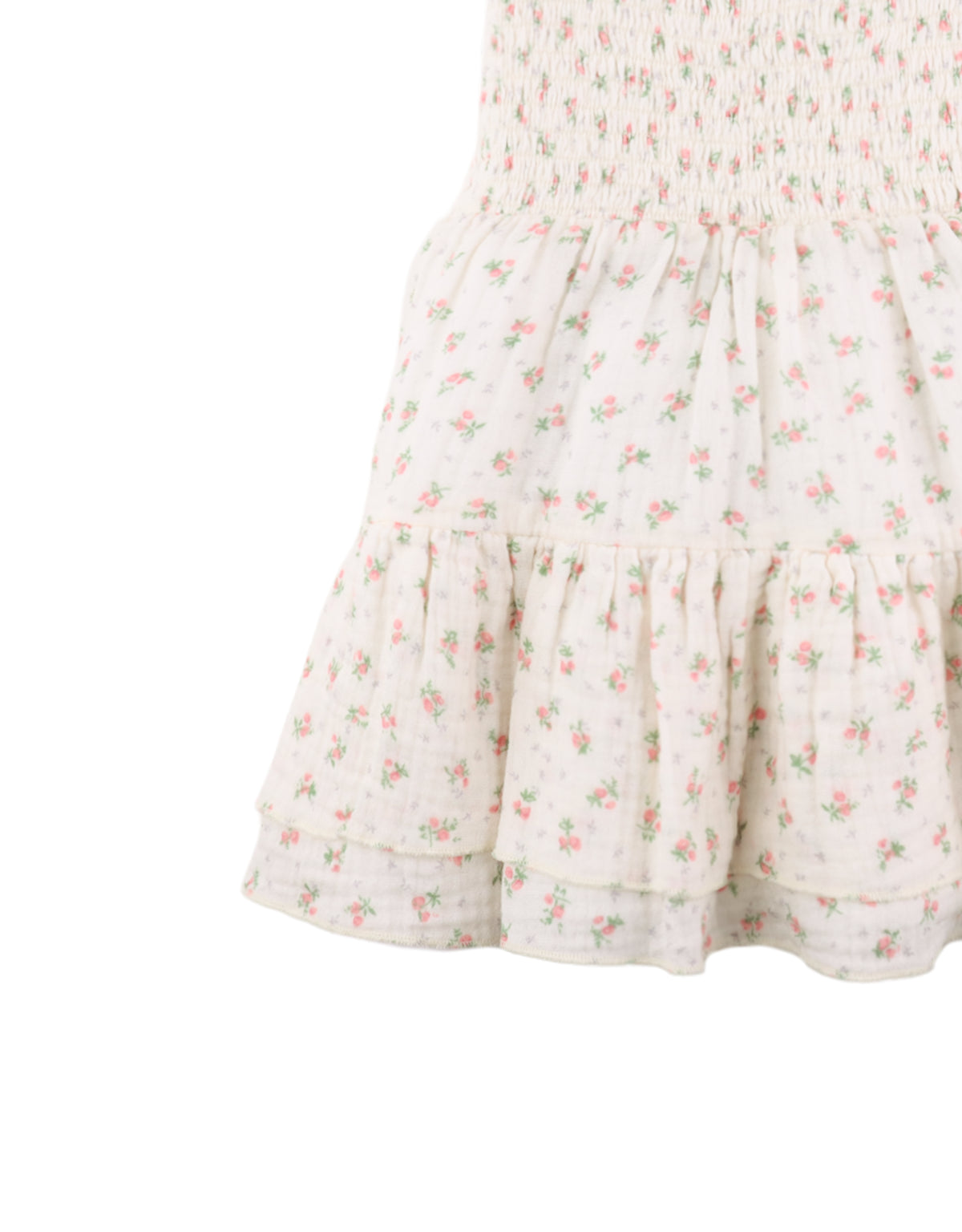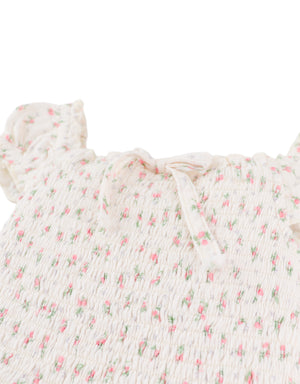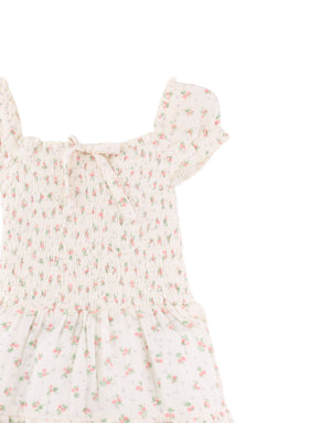 Delicate and lovely, this bow-embroidered playsuit is trimmed with fluttering ruffles. Comfortable and light, it’s ideal for playtime, outings, or twirling through everyday adventures.